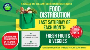 This food ministry is the last Saturday of each month and will continue through the Fall and Winter.